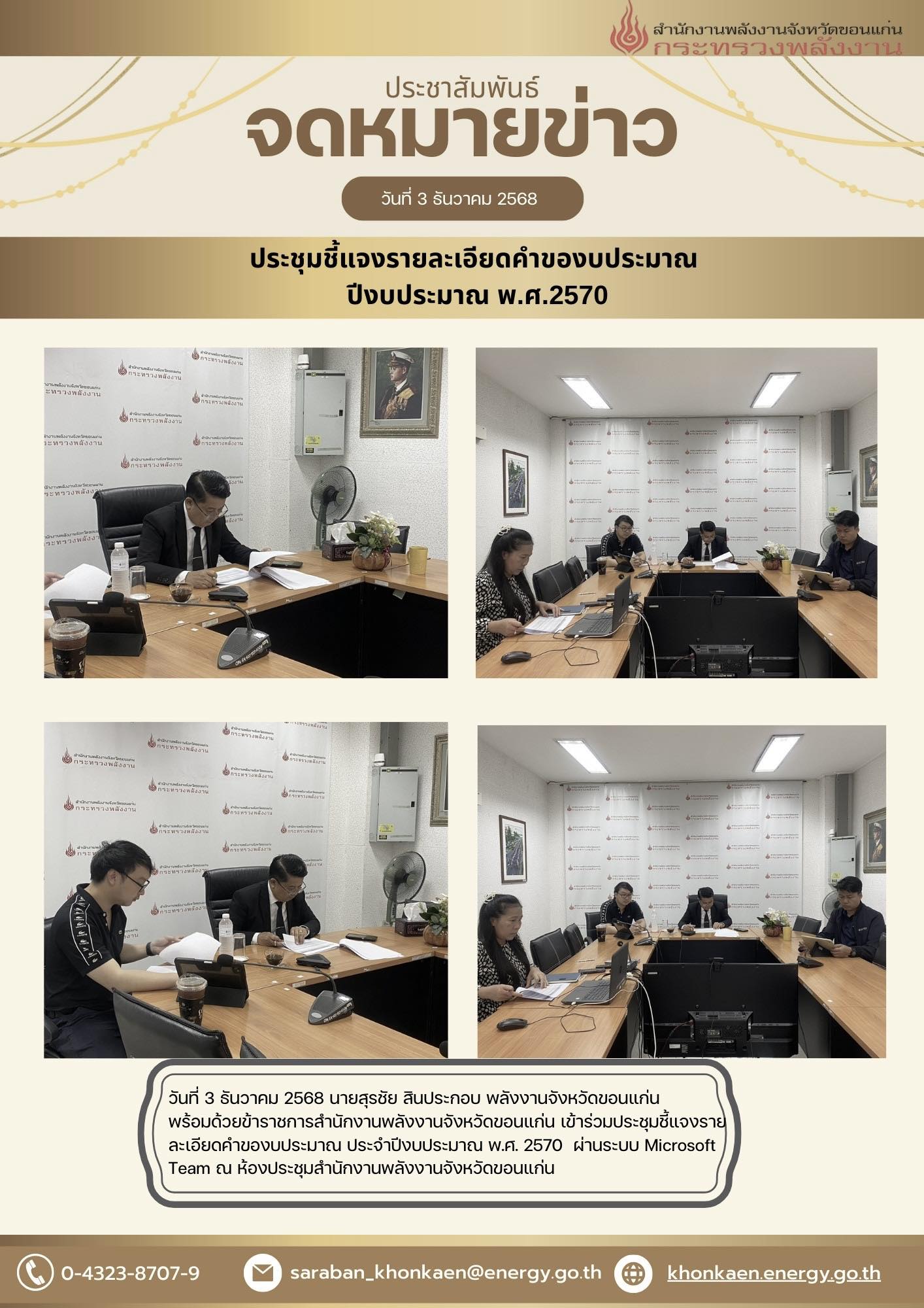 การประชุมชี้แจงรายละเอียดคำของบประมาณ ประจำปีงบประมาณ พ.ศ. 2570