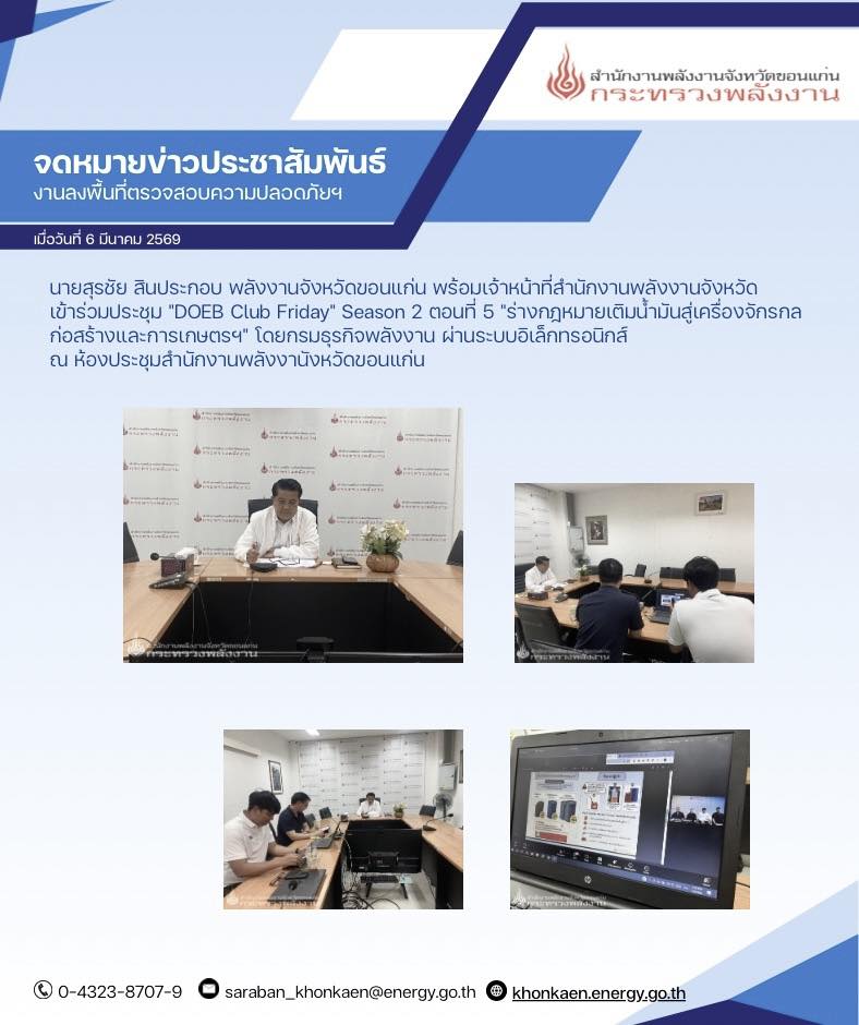 เข้าร่วมประชุม ”DOEB Club Friday” Season 2 ตอนที่ 5 ”ร่างกฎหมายเติมน้ำมันสู่เครื่องจักรกลก่อสร้างและการเกษตรฯ”